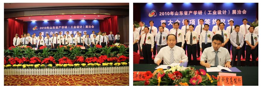 525上午1100,在濟南舜耕山莊舉行2010年山東省產學研(工業設計)展洽會和重大項目簽約儀式。國家工信部、中科院及省領導親臨大會,各市分管市長、經信委主任、高校科研機構及企業代表參加了會議。